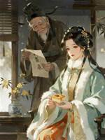 林玉禾忙掰團子,拿折扇。
